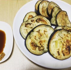 ナスも焼くだけ。お醤油にカラシを混ぜて食べることを息子のお嫁ちゃんから教わって、しばらくそれで食べてました。