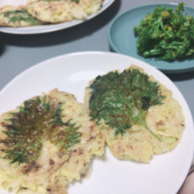 昨夜のメインは卵なし米粉のキャベツ焼き。