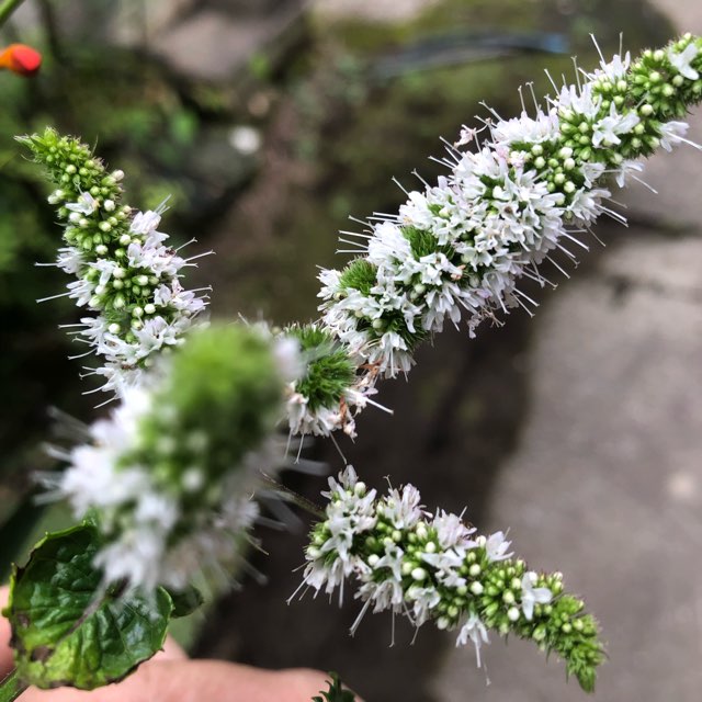 ついこの前新芽が出ていたミントはお花が咲いていて、父がつんできたお花たちの中に紛れていました。